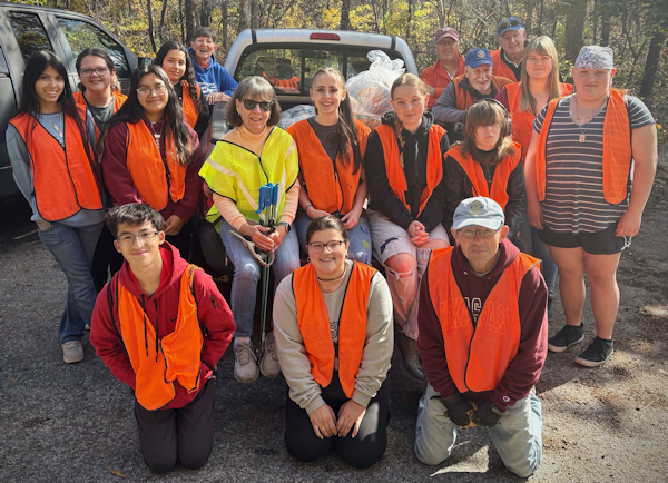 The Stonewall Jackson High School Interact Club and the New Market Rotary Club pose after volunteering for clean up day Oct. 18, 2025.